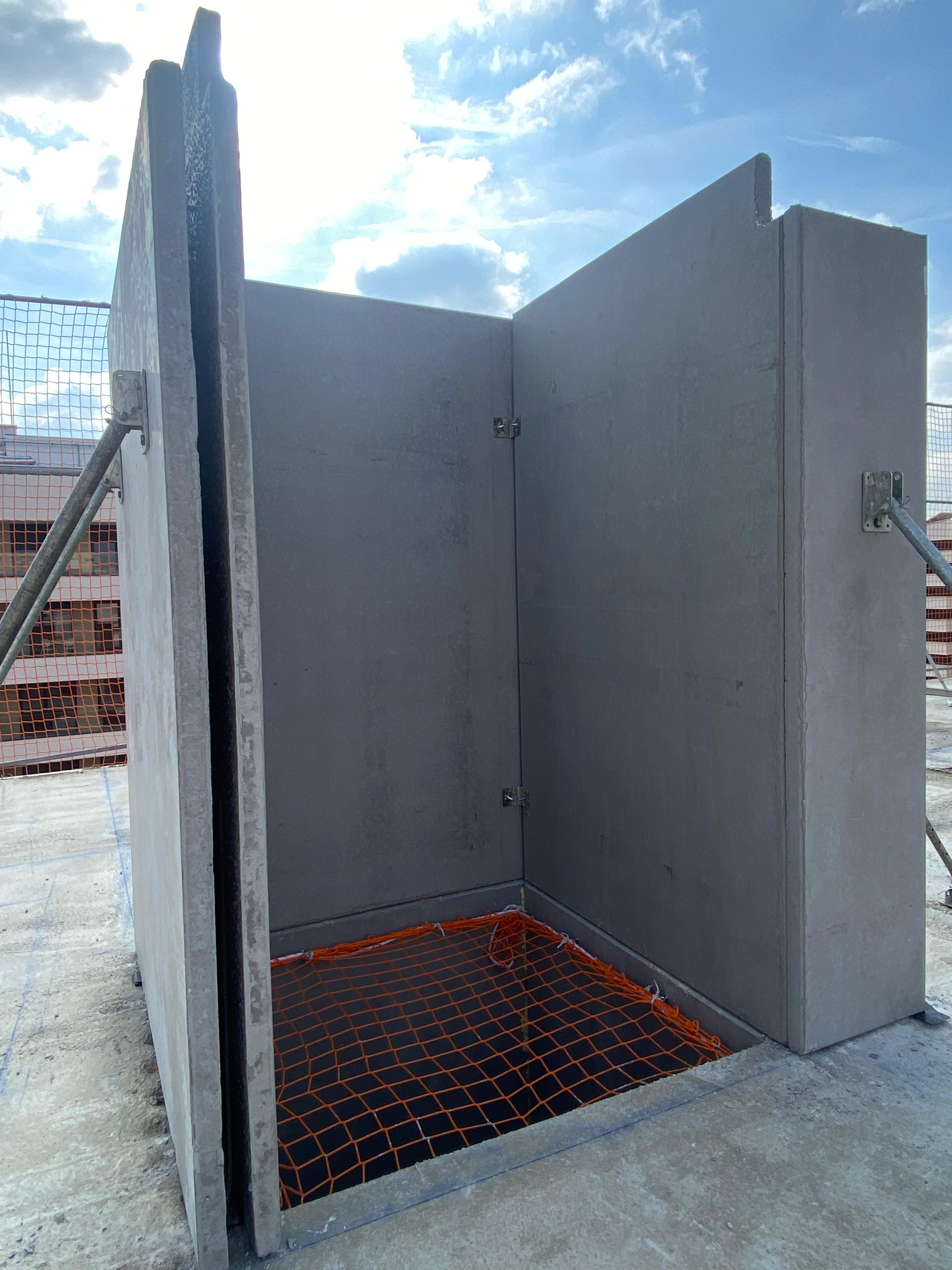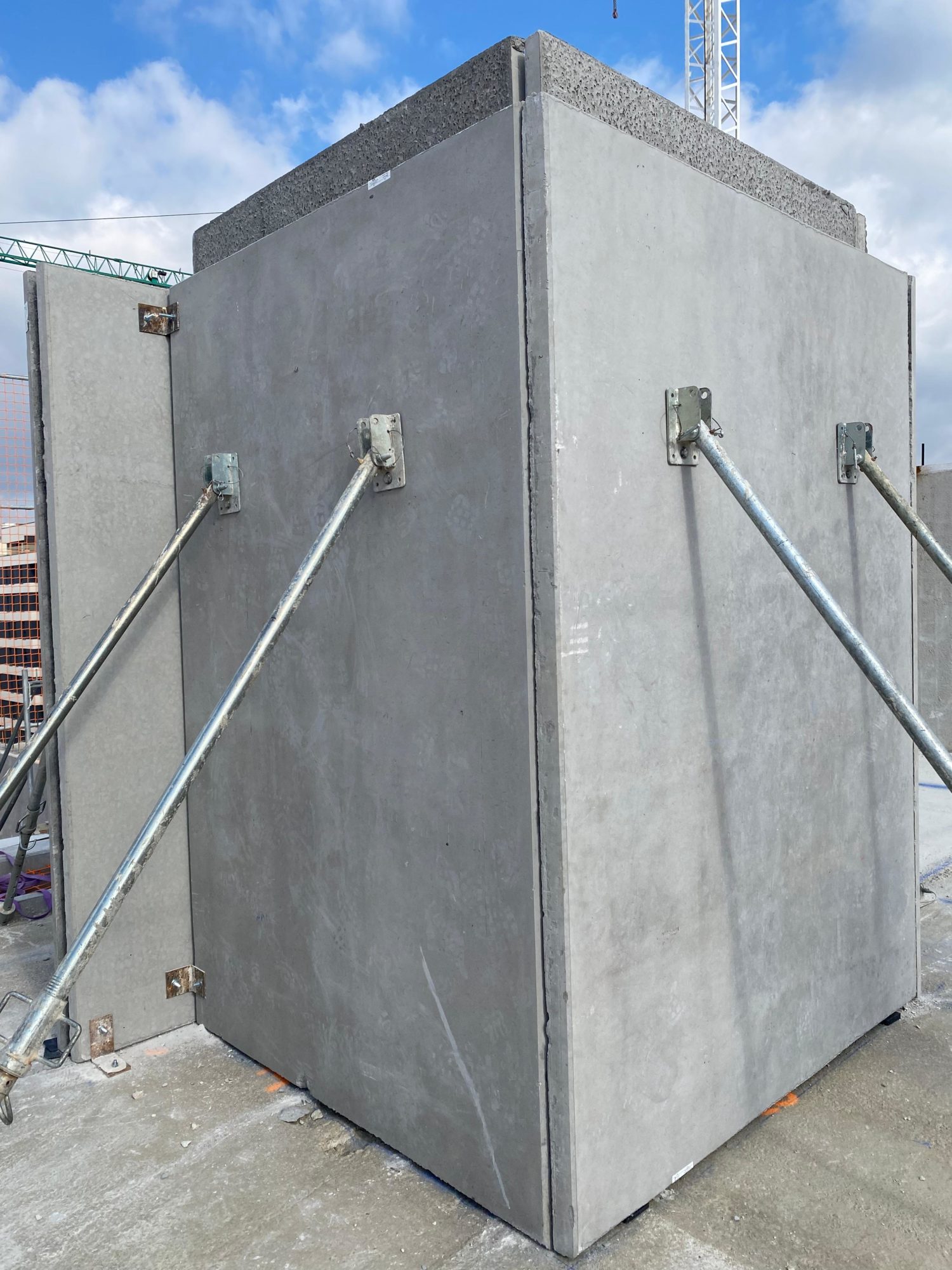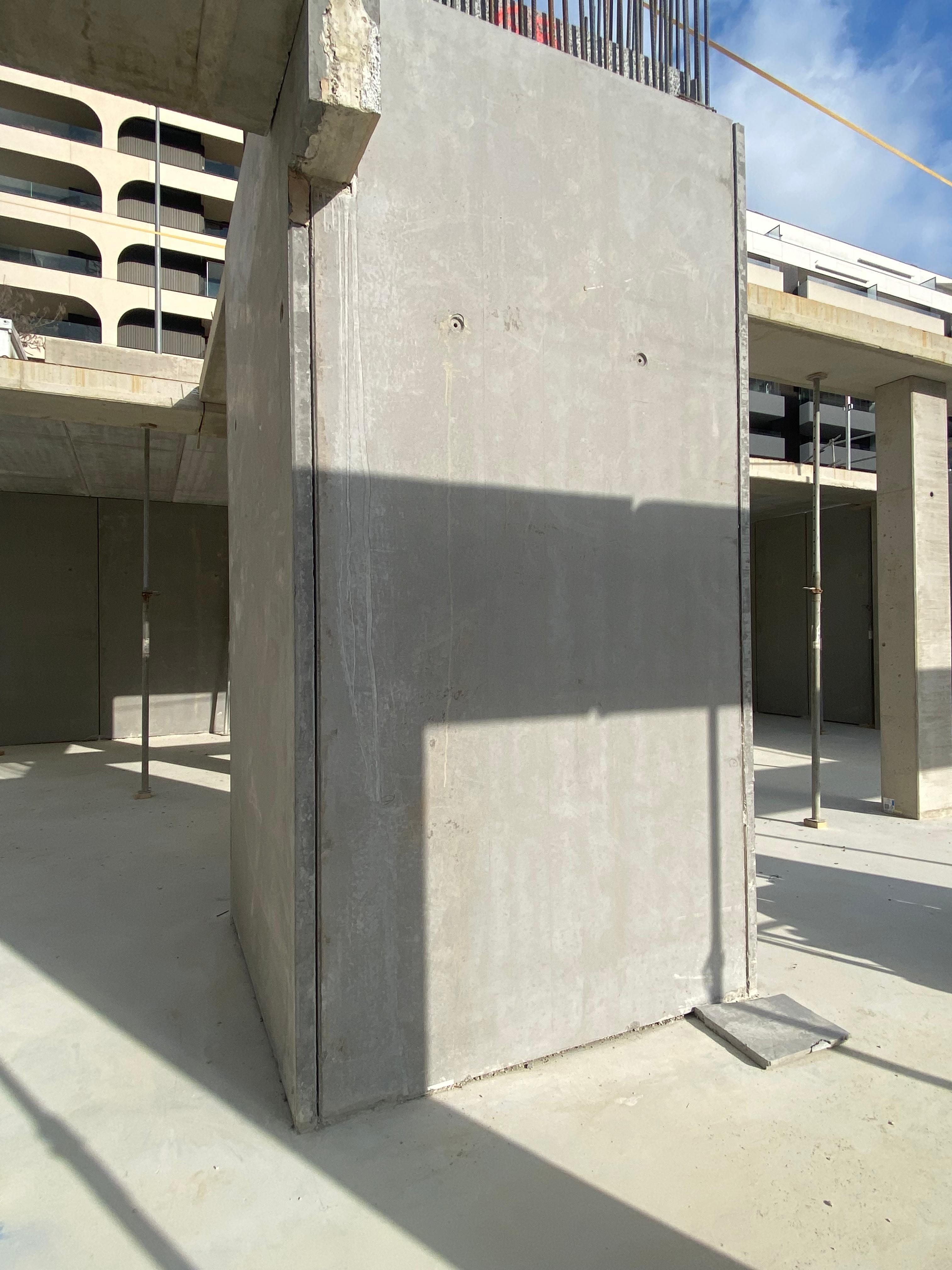 Empleamos espesores totales de entre 18 y 25 cm. Este tipo de estructuras se prefabrican para toda la altura del edificio desde la cimentación hasta los casetones de cubierta. La altura de las pantallas suele ser de 350 metros pero siempre nos adaptamos a las exigencias del proyecto.